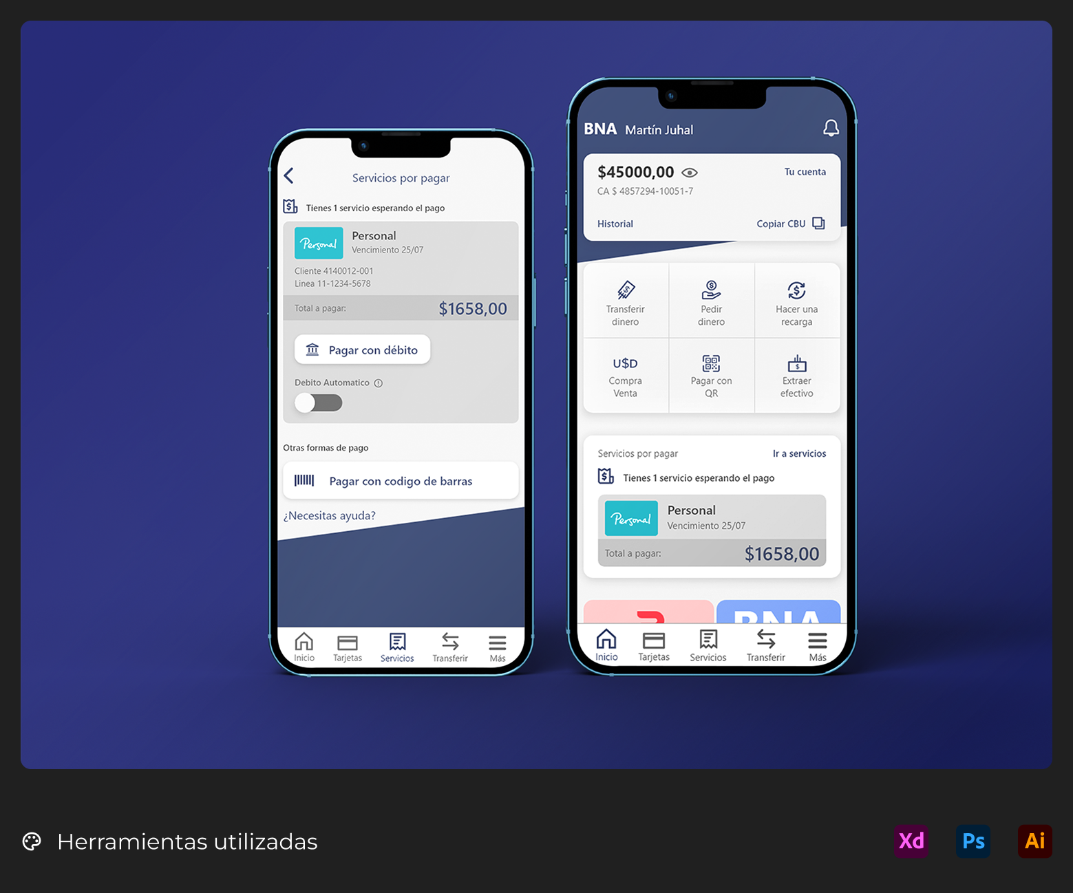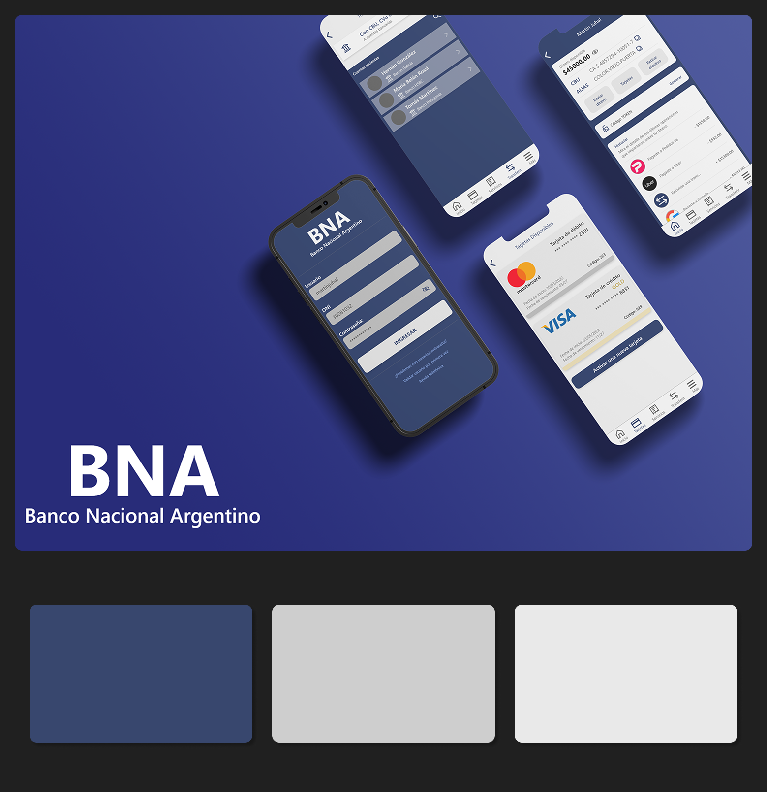 BNA es un proyecto personal que desarrollé como propuesta para dos bancos argentinos que enfrentaban dificultades en la usabilidad de sus plataformas de home banking.